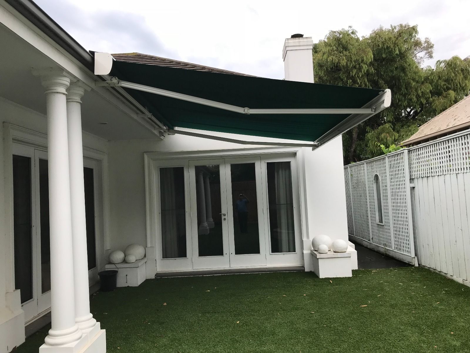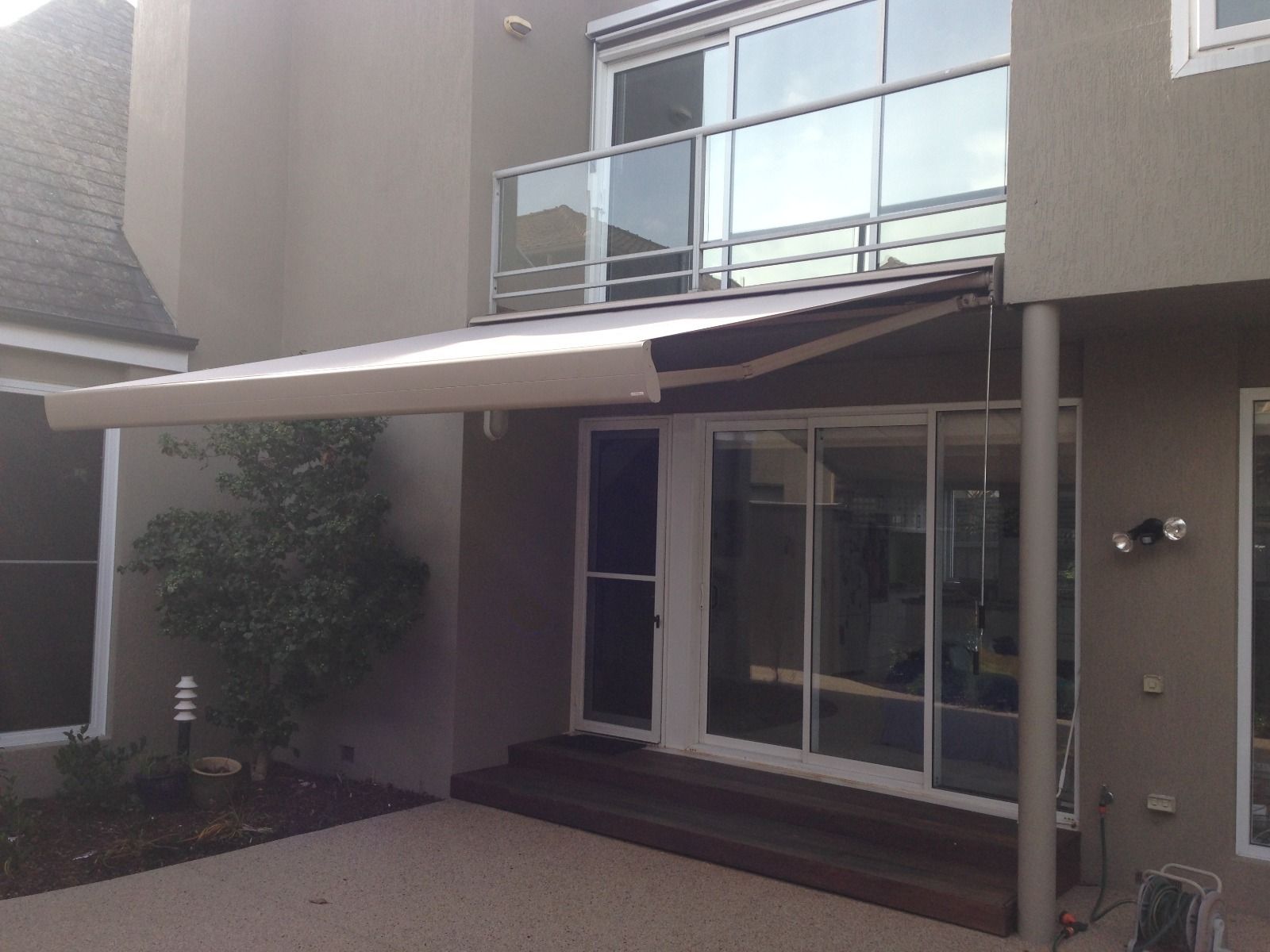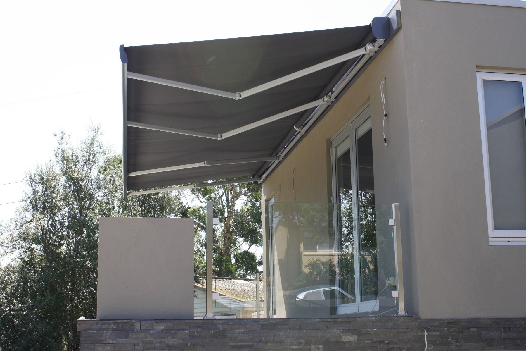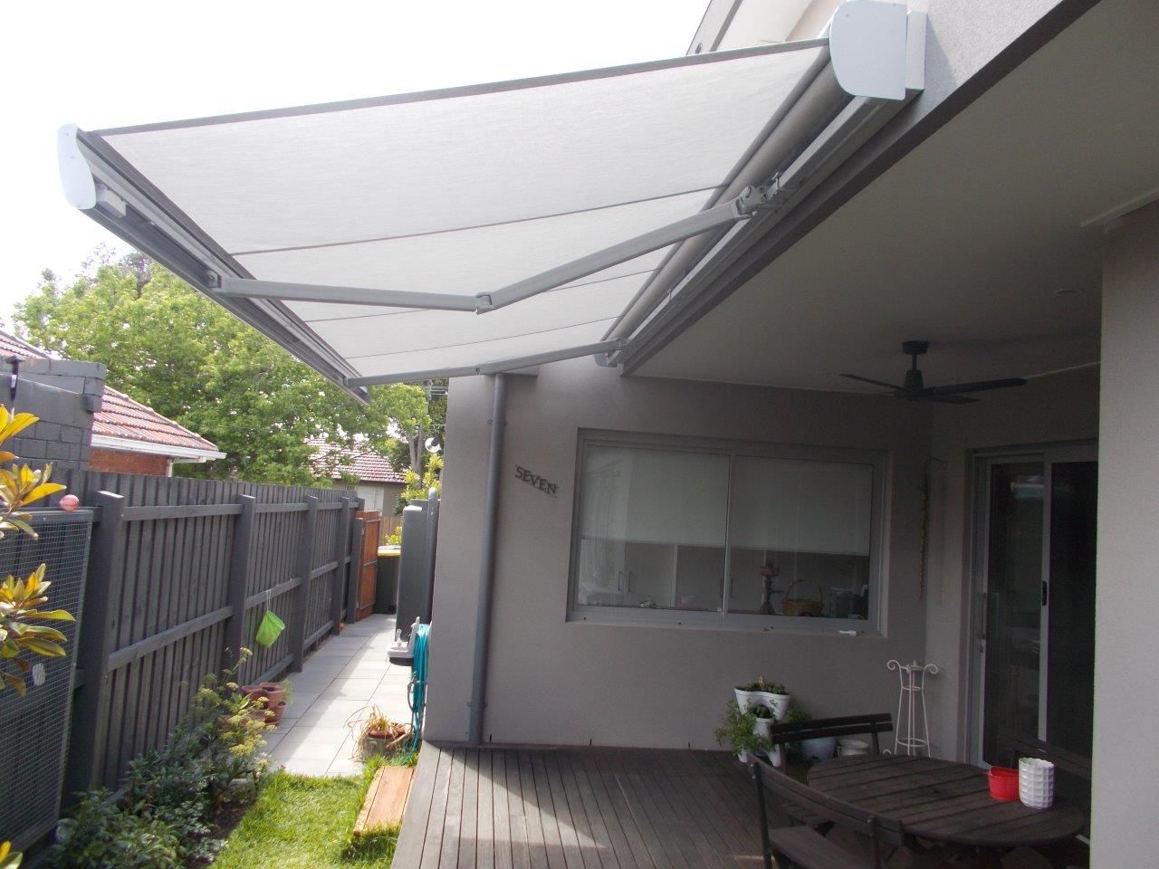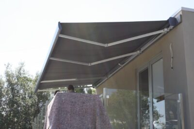 Contemporary design of Aluxor Stratos 3 Folding Arm Awning fits well with both modern and traditional architecture.