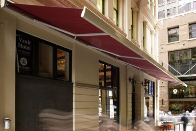 Ideal awning for large areas up to 18 metres wide and to 4 metres extension. Aluxor Stratos 3 features Heavy-Duty German engineering, marine grade components and fabric and neat semi-cassette headbox.
