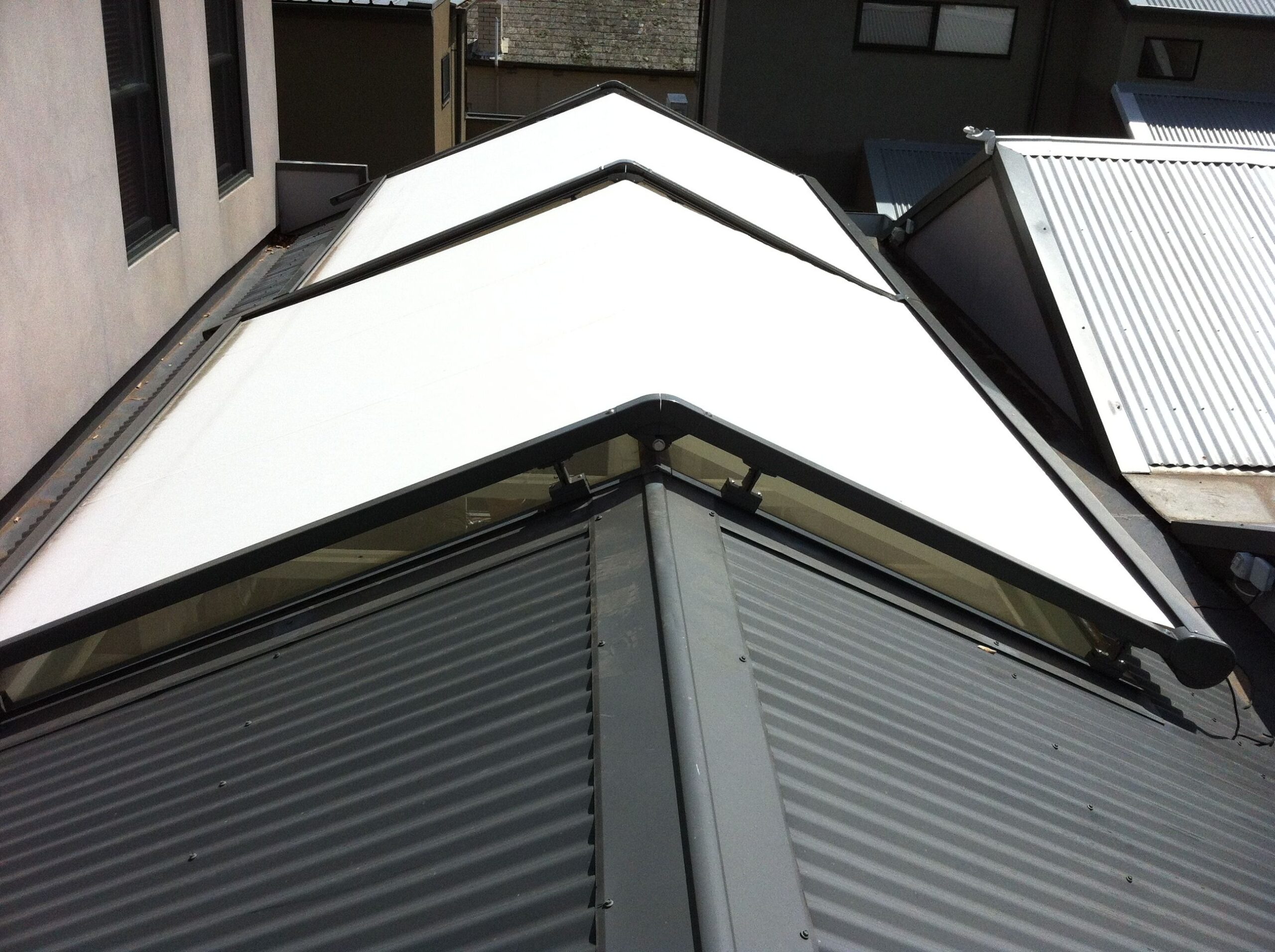 Awnings can extend to 6.5 metres wide and 6.5 metres in projection (limited to a total of 39 square metres) with coupled units extending up to 24 metres wide to a total of 120 square metres. All awnings are motorised and powdercoated to your choice of colour.