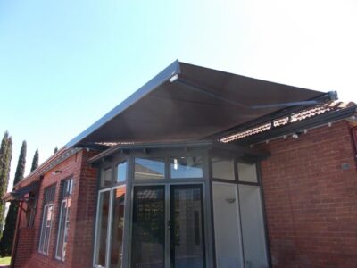 The Toga is available in 6 powdercoat colours as standard or can be customised from a choice of 140 colours. As well as standard applications the Toga also can be adapted to incorporate our special Oversquare design, whereby the awning can project to a distance that is greater than its width. This offers a smart way to squeeze a deep projection into a narrow space such as courtyards in inner city housing. When the Oversquare feature is used a fabric valance replaces the bottom section of the aluminium fascia.