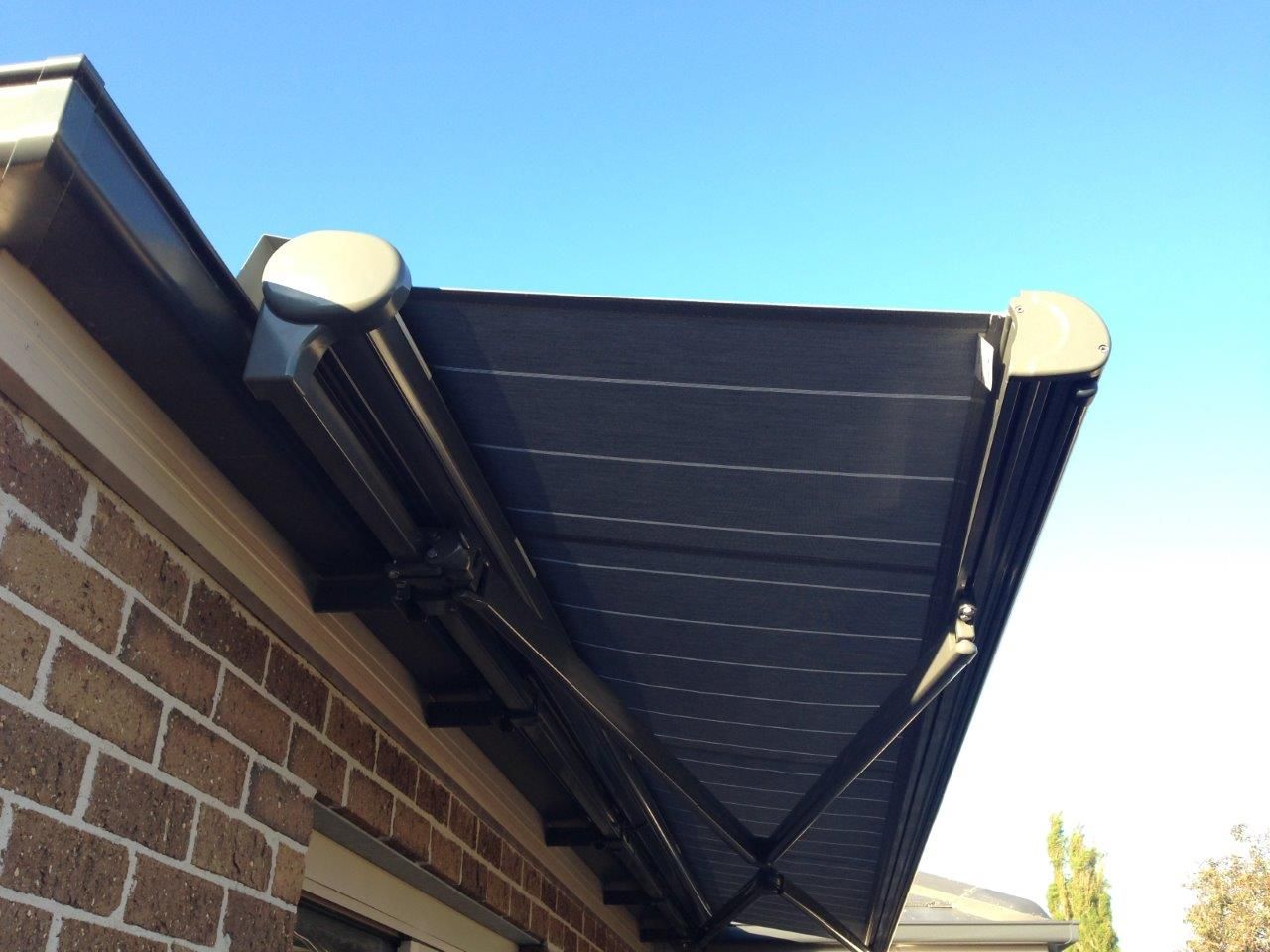 A Vario Volant option is also available whereby a retractable vertical fabric screen, predominately see-through mesh fabric, is fitted inside the front rail. This is especially ideal for blocking out sun glare from west facing locations and seasonal low direct sun while still retaining views. The Toga can be operated manually or can be motorised with optional sun, wind and timer systems.