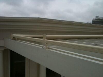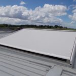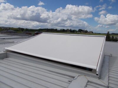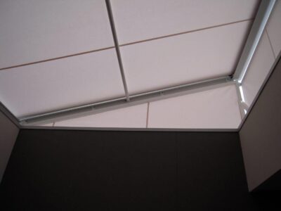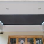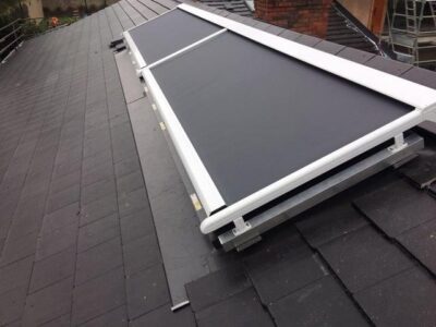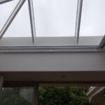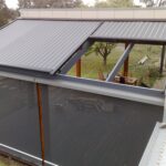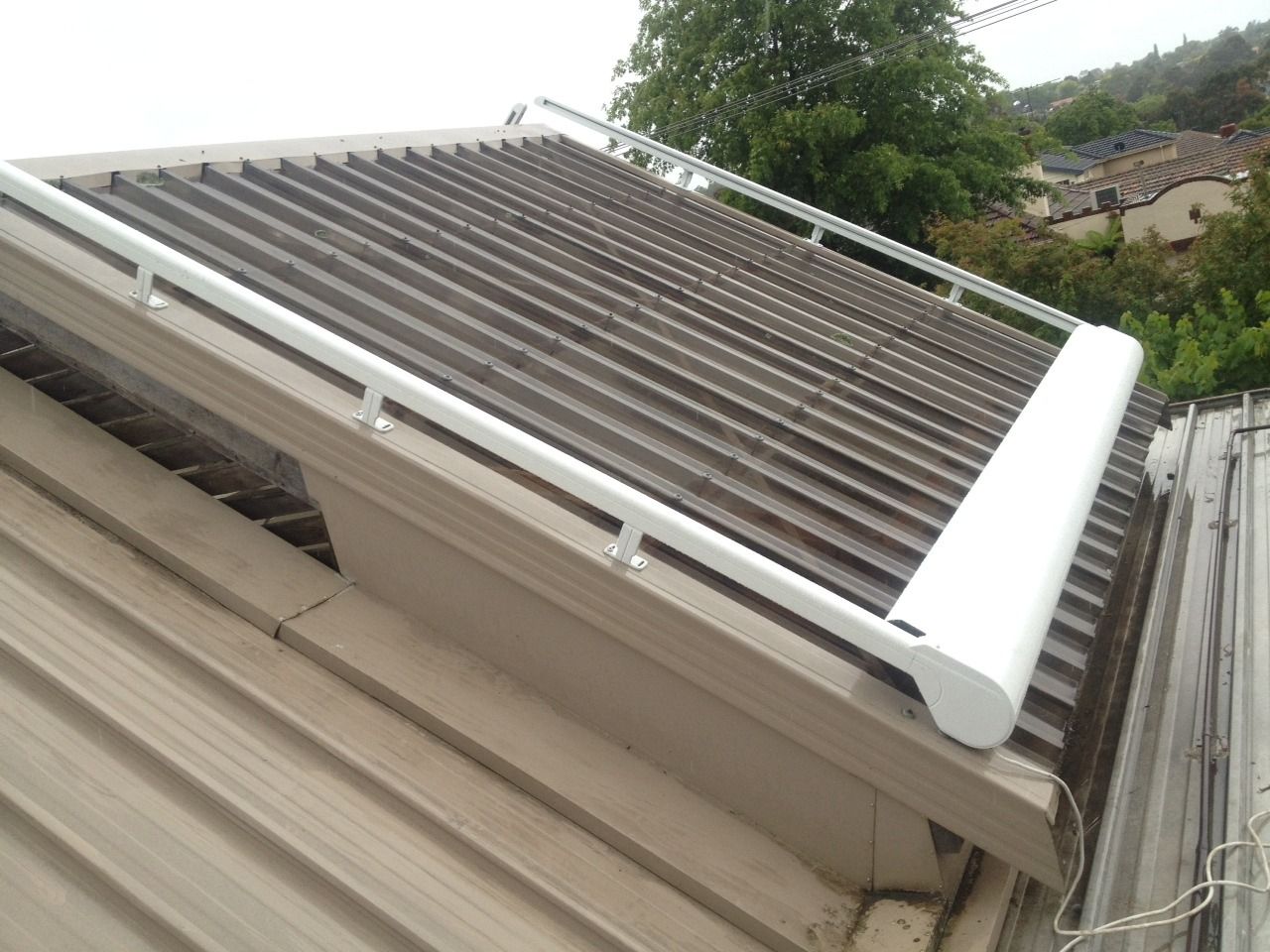The awning is kept at a set distance from the conservatory roof by the positioning of the guide rails and a cable-spring system that keeps the fabric under constant tension. A space is kept free between the side guide rails and the fabric in order to ensure good ventilation and heat dissipation.