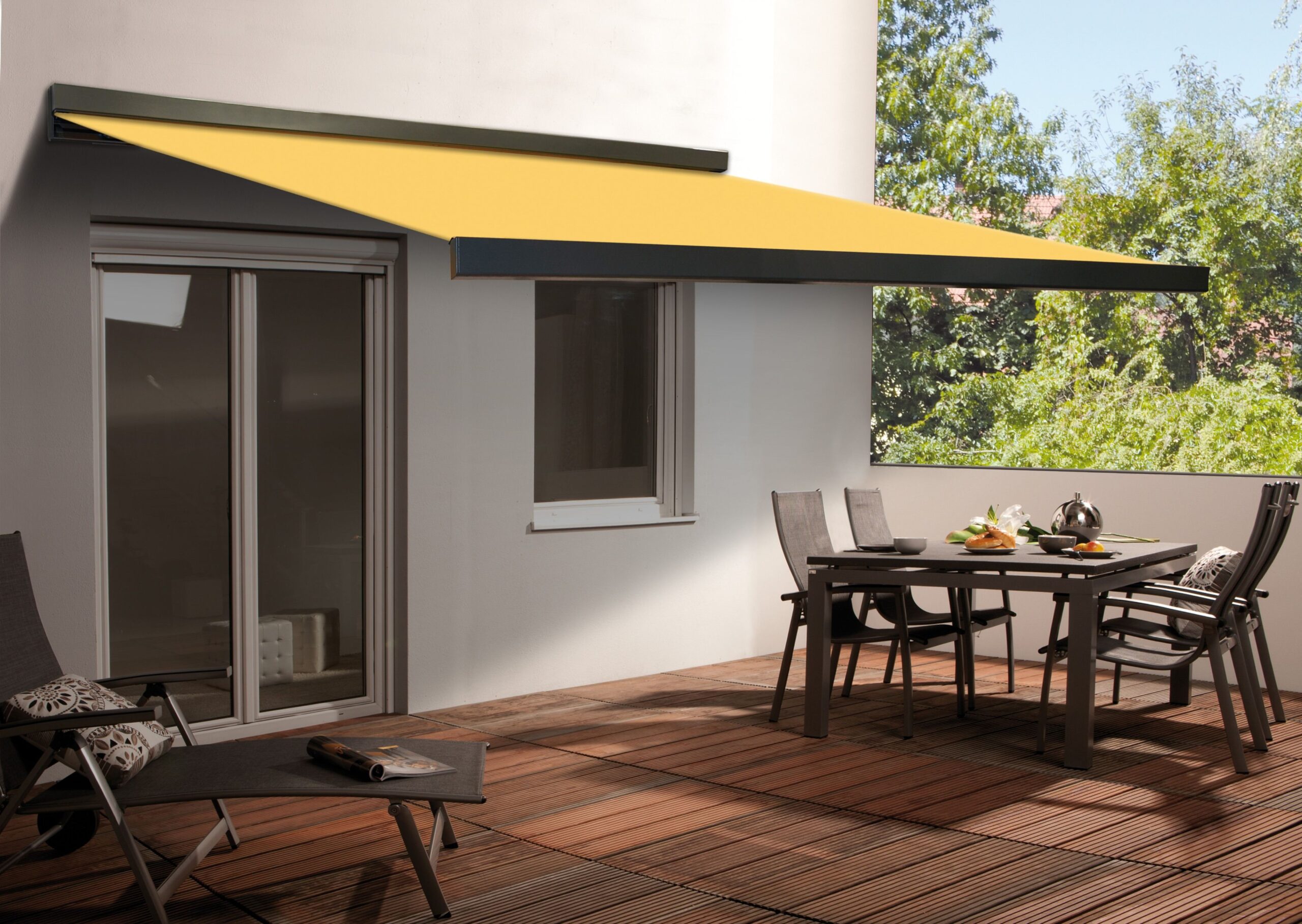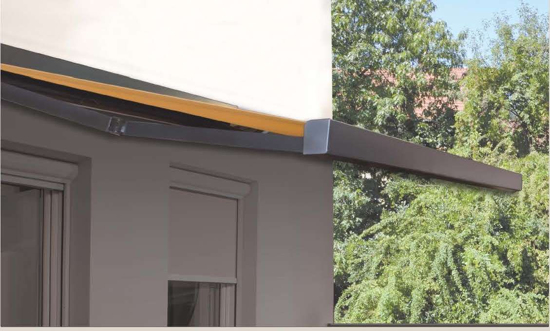 * The rectangular aluminium cassette protects both the fabric and the arms against weather and environmental pollutants.