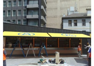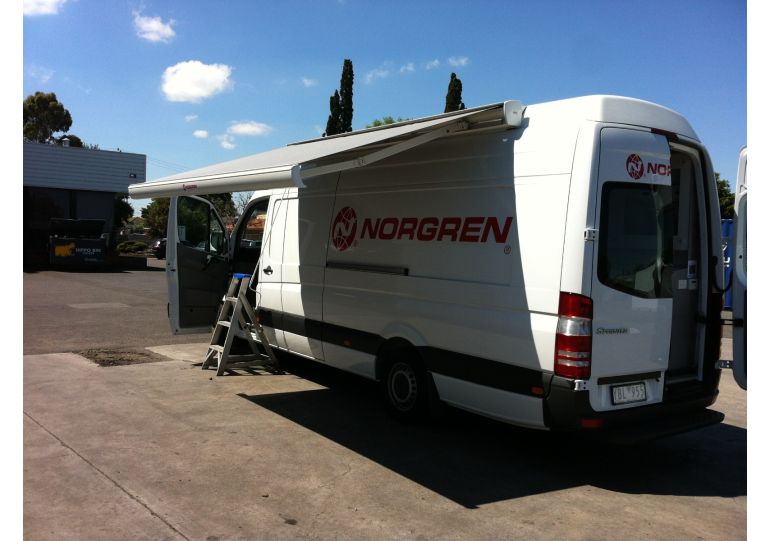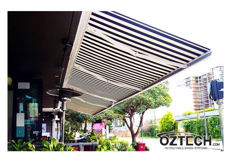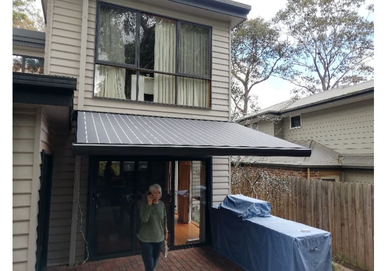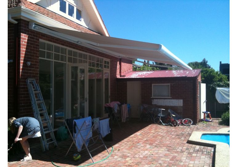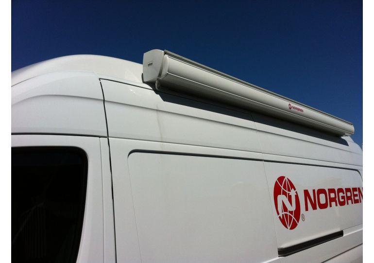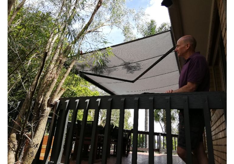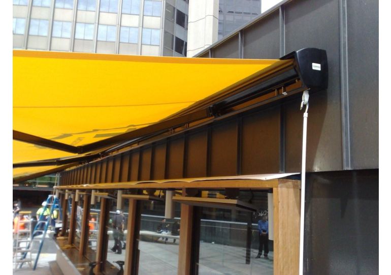 An adjustable bracket ensures the front profile is always vertical. A special mechanism ensures reliable positive closing when the awning is retractArm bracket