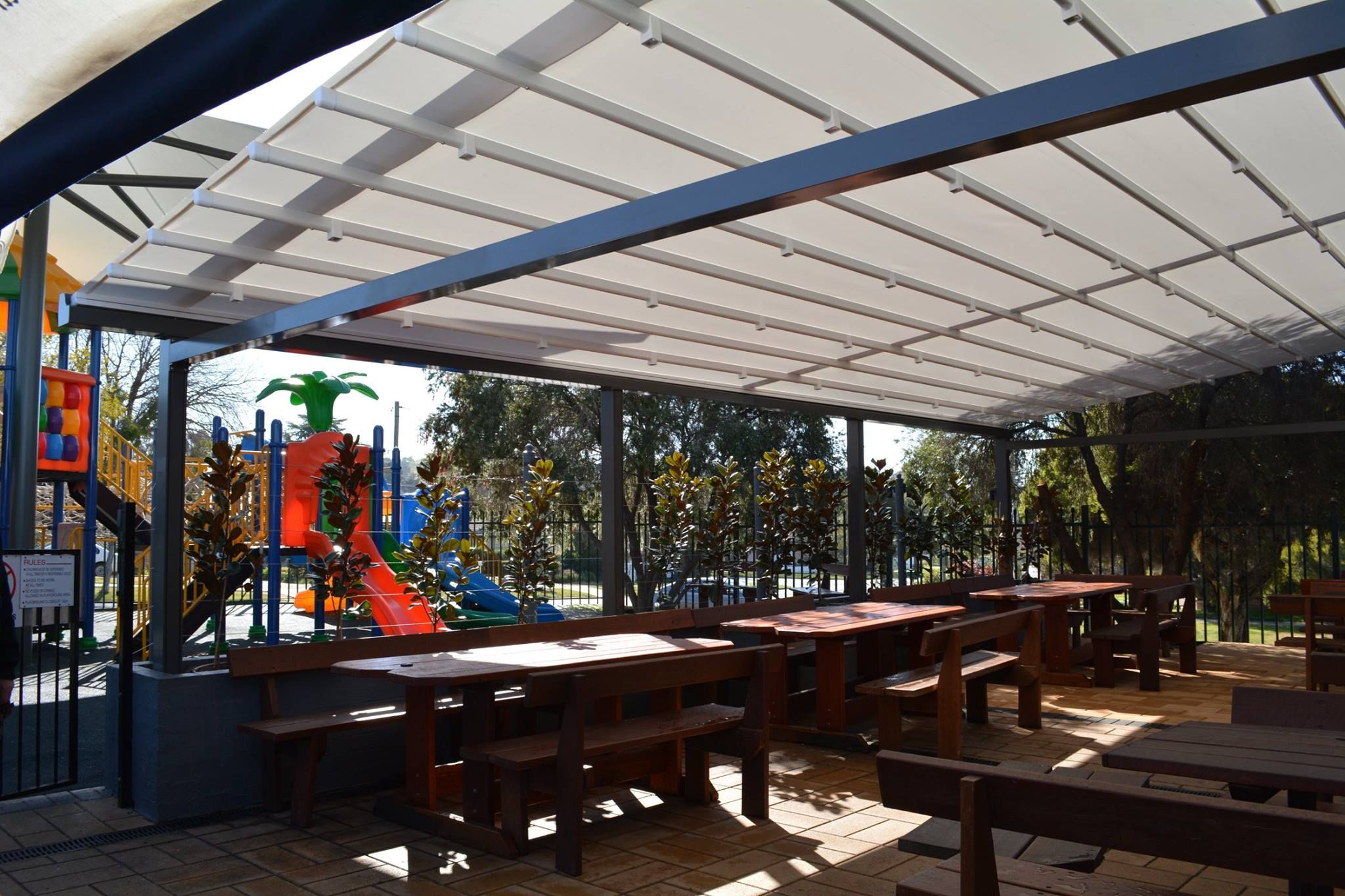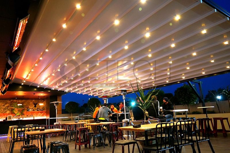 The Oztech Aristo retractable pergola system provides a stylish architectural covering to allow large outdoor areas. The system offers a wind rating up to Beaufort class 11 (up to 117km/h) and is designed to stand up to even the worst of weather conditions rain, hail or shine.
