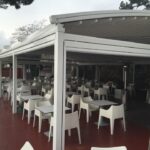The German manufactured, fire rated and 100% waterproof architectural membrane is available in a range of colours, both opaque and transparent, providing maximum stability and resistance to temperature, moisture and dirt. It does not shrink or stretch, and the acrylic top coating makes it very easy to clean for years to come. When not in use the fabric is neatly retracted under the systems hood to provide maximum protection.