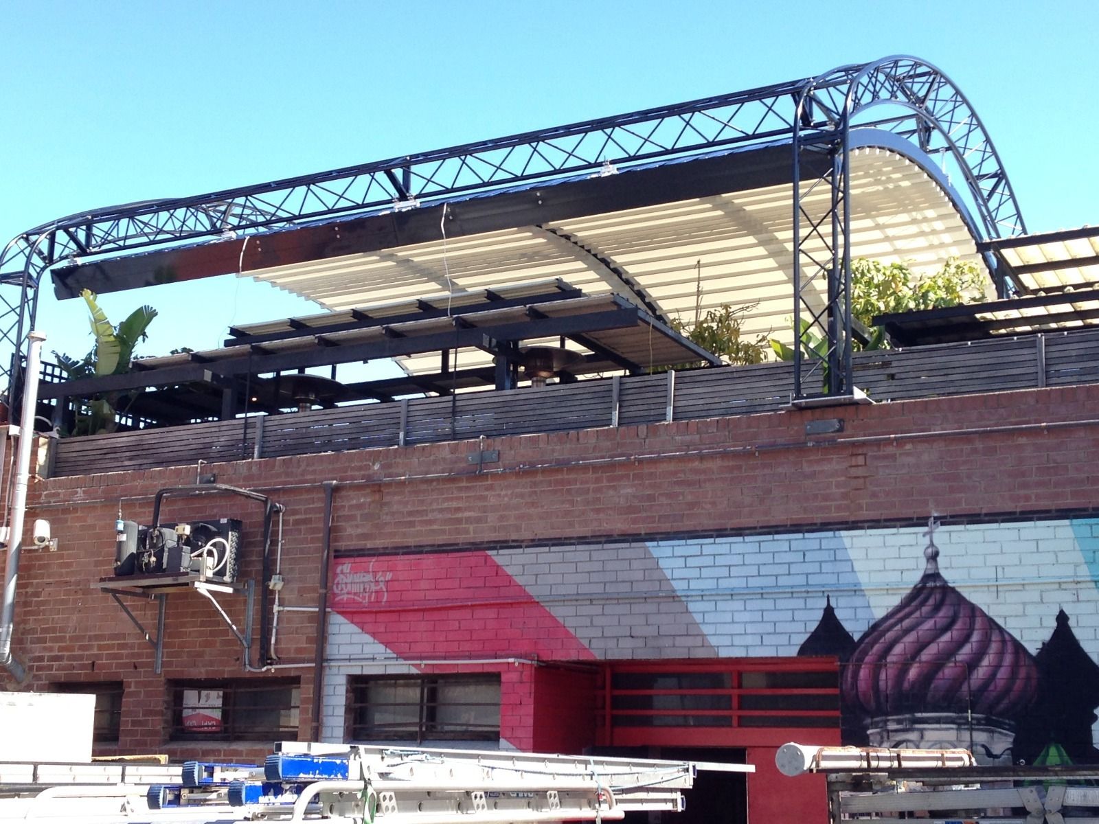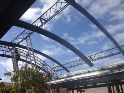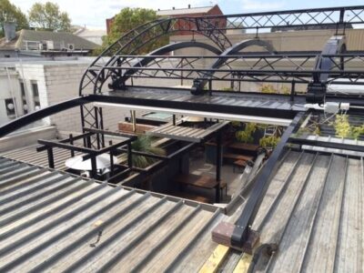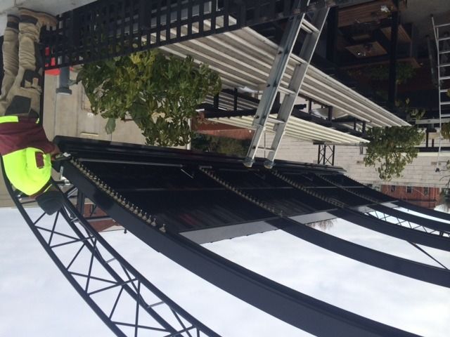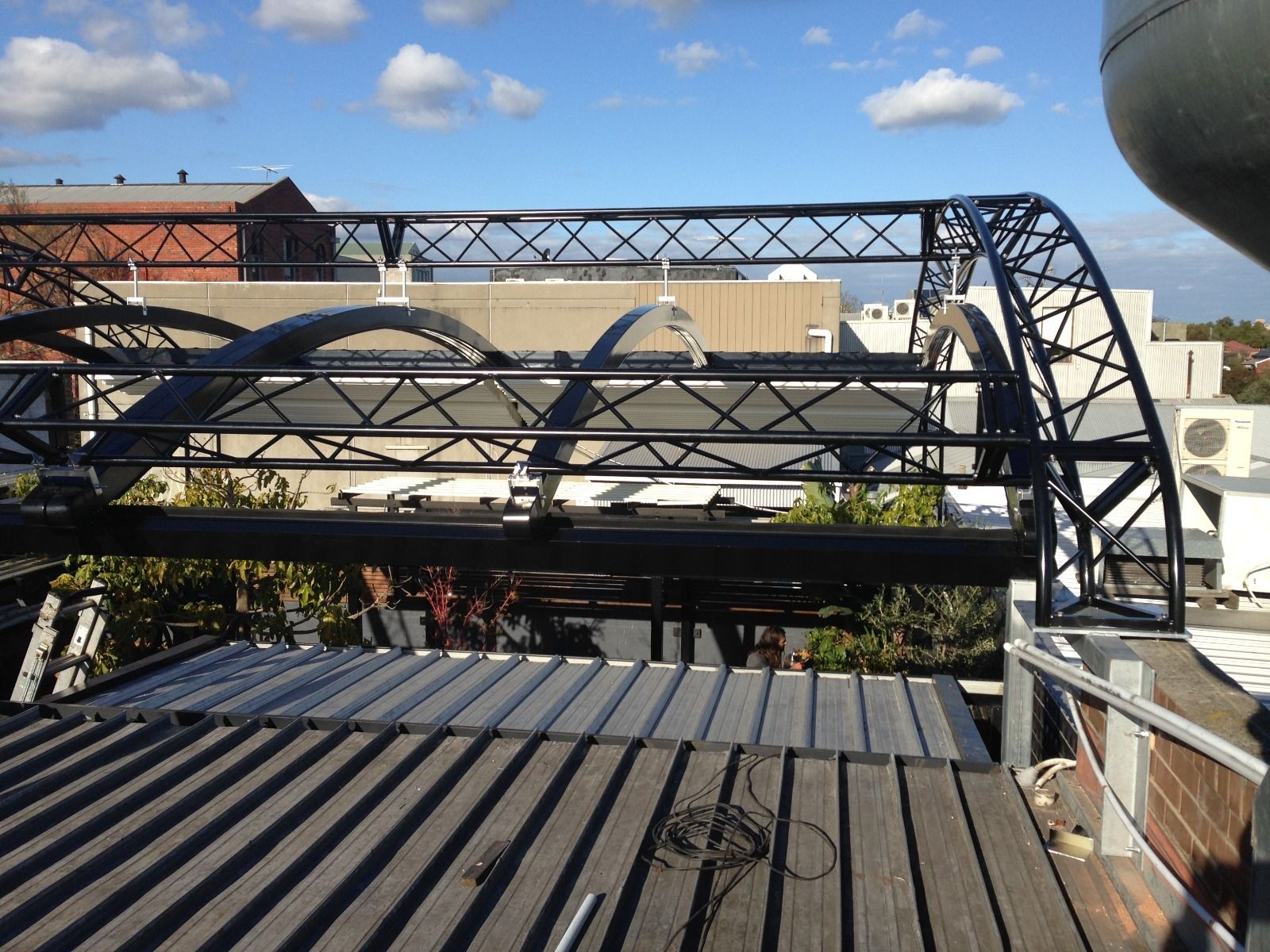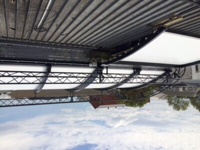 The heart of the system is driven by the Oztech F3 eight wheel slider carriages. Each F3 slider carriage has a load limit of 600kg) that incorporates a triple layer barrier system. This works in conjunction with a timing belt that has been reinforced with multiple internal stainless steel cables to provide a pulling strength of 966kg. It’s this tension that is applied to the fabric membrane and ensures all water drains away in the dual internal gutter systems.