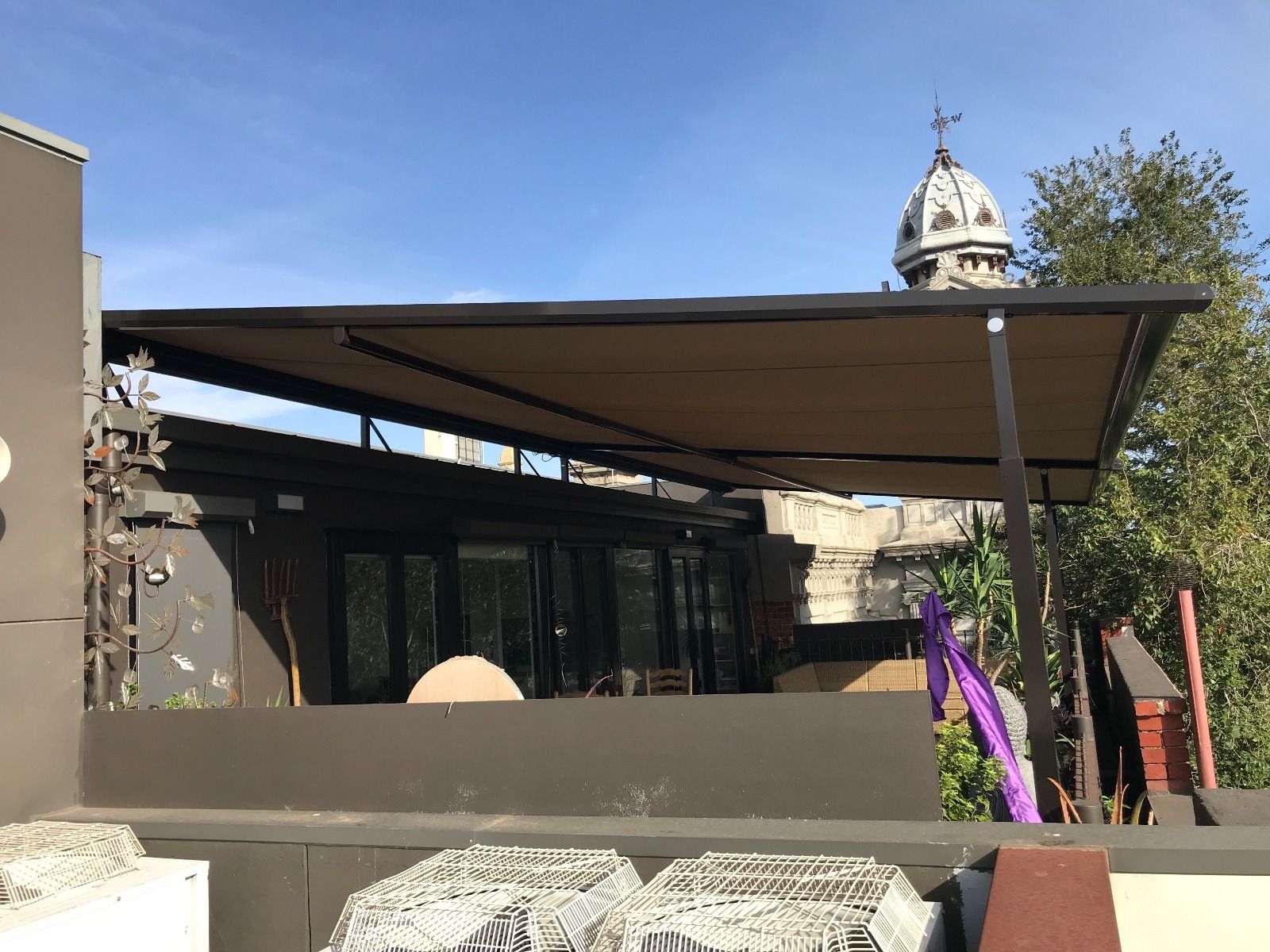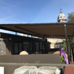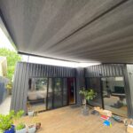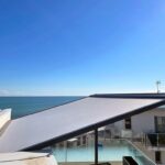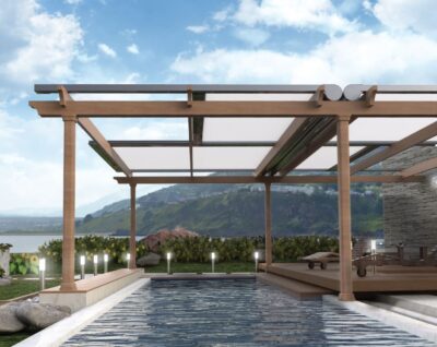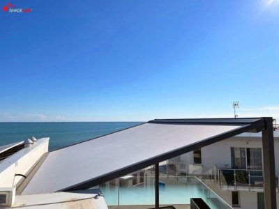 Pergozip by Renson By Issey, harmonious and functional design, elegant and simple structures for using the outdoor space completely, common Renson By Issey structures. Pergolas become relaxing oasis, creating new spaces on gardens and terraces where to live in harmony with nature. Shading pergola with minimalist design, highly practical, with functional elegance and strength. The cloth is rolled up in aluminum cassette and tightened through gas springs and side zip. Renson quality, recognizable at first look. Suitable to shade existent structures, like winter gardens, pergolas, terraces, also of big dimensions.