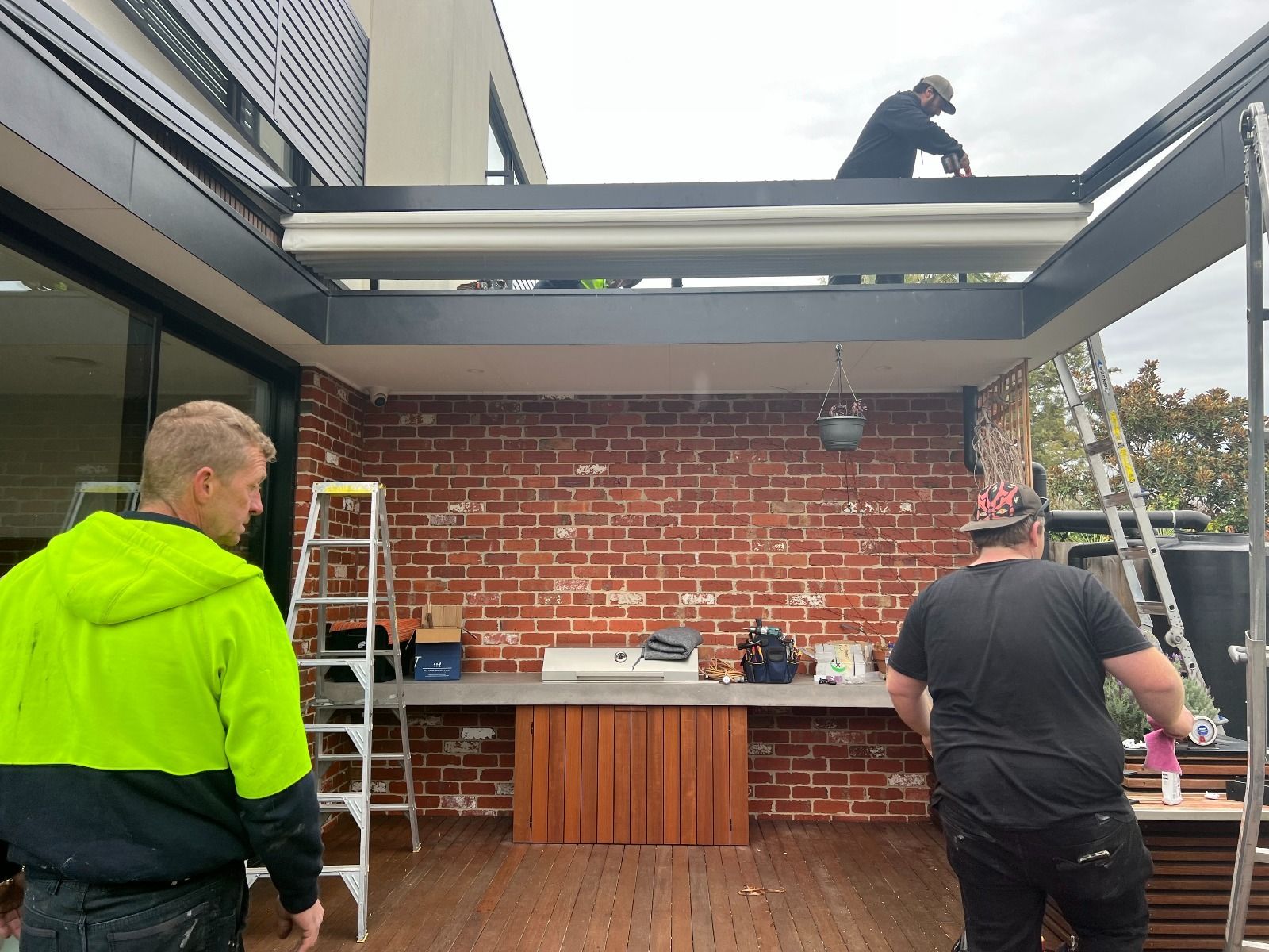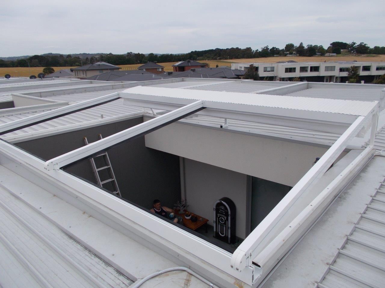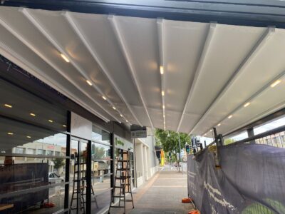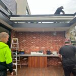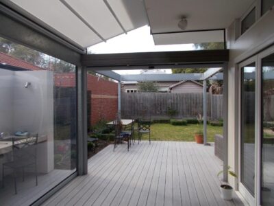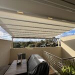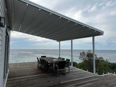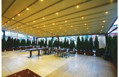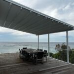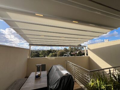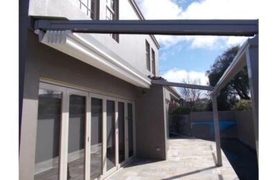 The Rising Flat retractable pergola system offers a stylish covering to allow outdoor areas to be used all year round. The system offers a wind rating up to Beaufort class 11 (up to 117km/h) and is designed to stand up to the worst of conditions rain, hail or shine. The system is manufactured to size using high grade 6063 extruded aluminium profiles finished with thermosetting powder coating which provides superior overall performance for exterior product applications. All bolts, screws and pins are high grade The rafter profiles (80mm x 130mm) have been designed with unique water guard side channels and cast aluminium end plates to allow for projections up to 8m per system. Widths are customised according to site requirements and available in any size up to 13m. The system offers up to 91sqm of protection at the touch of a button. Linking multiple systems is also made easy by our patented storm channel joining system that ensures a 100% waterproof join every time. The system also includes an integrated gutter system with internal drainage to carry away even the heaviest rain. Remote controlled motorisation is provided utilising European technology through a custom built direct drive motor system to ensure smooth and quick operation. The optional high powered LED-TEC lighting system provides a touch of class and when combined with a remote dimming controller you are able to change the mood to suit the surrounding environment. The heart of the system is driven by multiple wheel slider carriages. Each slider carriage has a load limit of 600kgs that incorporates a triple layer barrier system and works in conjunction with a timing belt. This has been reinforced with multiple internal stainless steel cables to provide a pulling strength of over 966kg. It’s this tension that is applied to the fabric membrane to allow an angle of 6 degrees fall possible and ensure all water drains away in the internal gutter system. The German manufactured, fire rated and 100% waterproof architectural membrane is available in a range of colours, either opaque or transparent. It provides maximum stability and resistance to temperature, moisture and dirt. It does not shrink or stretch, and the acrylic top coating makes it very easy to clean. When not in use the fabric is neatly retracted under the system’s hood to provide maximum protection. The system also comes with Stormguard soft touch edge sealing made with flexible natural rubber. This sealing provides the ultimate protection against rain and draughts.