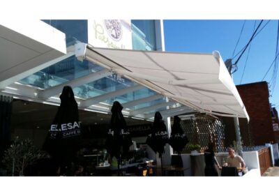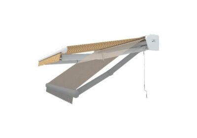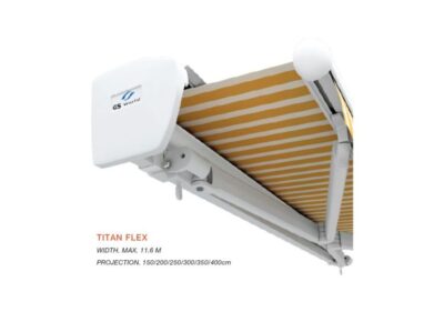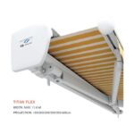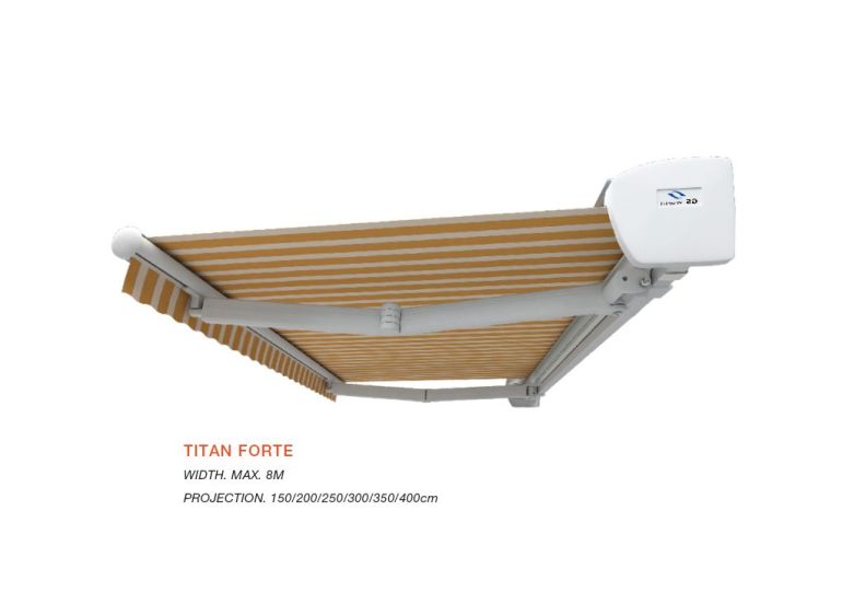 The Titan Flex awning is a durable, high-quality awning that is elegantly style and incorporates refined technical features. The Titan is a cost effective awning with large profile ideal for wall fixing. Available as an open awning (Titan) A combination of galvanised steel, aluminium and Teflon-coated bearings means excellent rust resistance. High tension spring arms ensure fabric sits away from armo joints with plastic coated single cable hinged arms (no grease!).