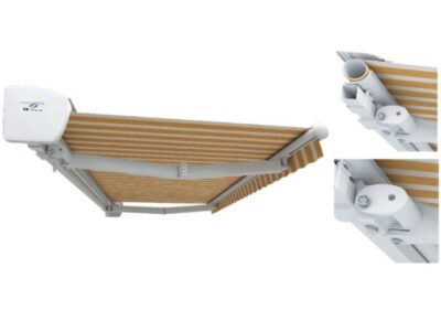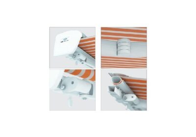 The extremely high spring tension of the hinged arm ensures a superbly taut sit of fabric, with no resting of the awning cloth in the arm joints. The hinged arm joints feature a pin made of high-grade steel.