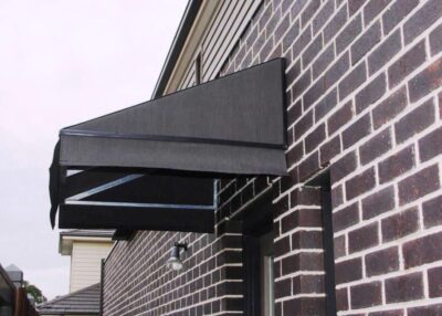 Melbourne Awnings wedge canopy shade awnings are the ideal solution for year-round shading and rain protection for a doorway or shop front. Our wedge canopy awnings are made from fixed welded aluminium frames and a fabric of your choice. The custom-made canopy comes in any size up to 6000mm long with a maximum projection of 1800mm.